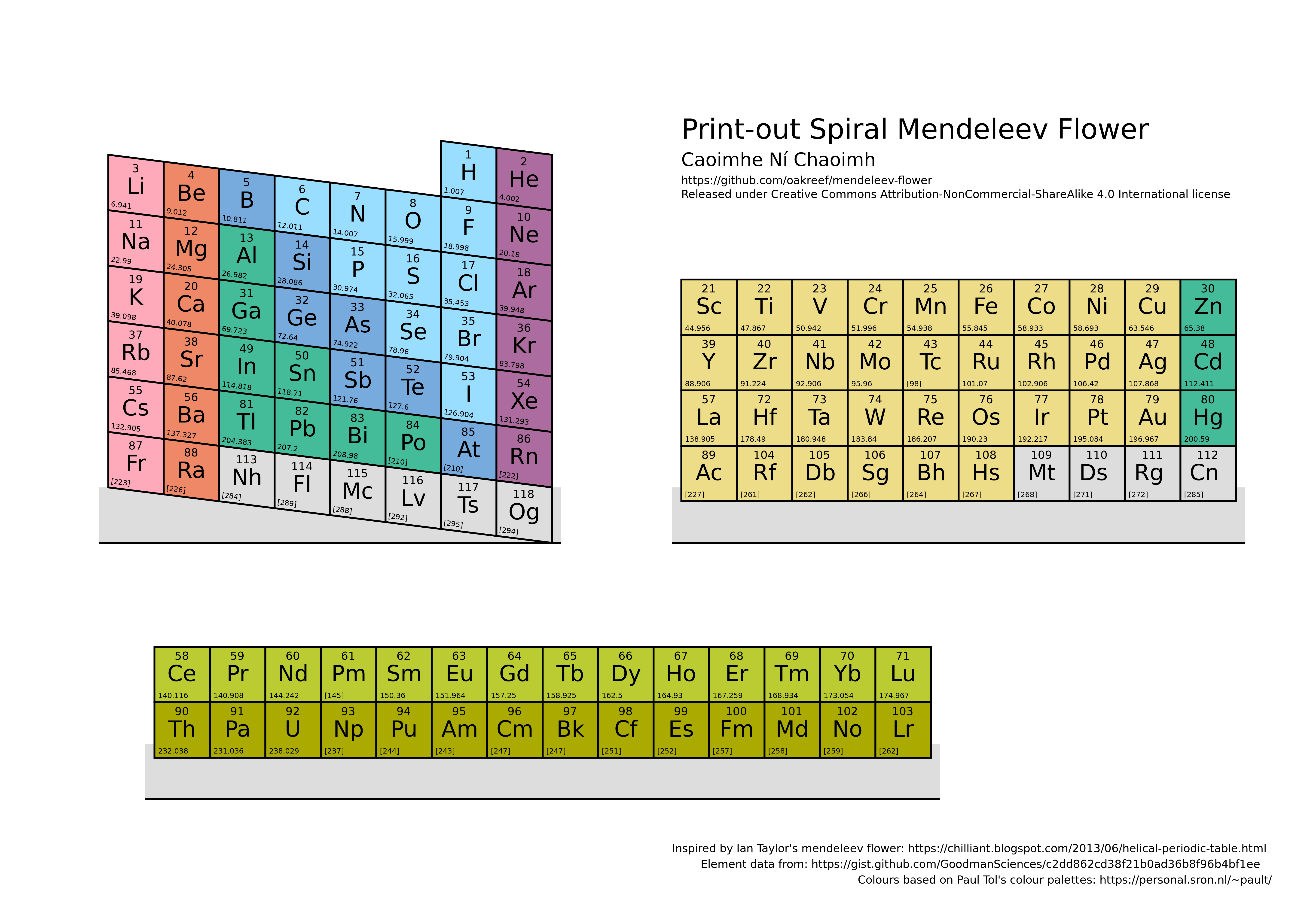 A printable, paper, three-dimensional, spiralling, periodic table of the